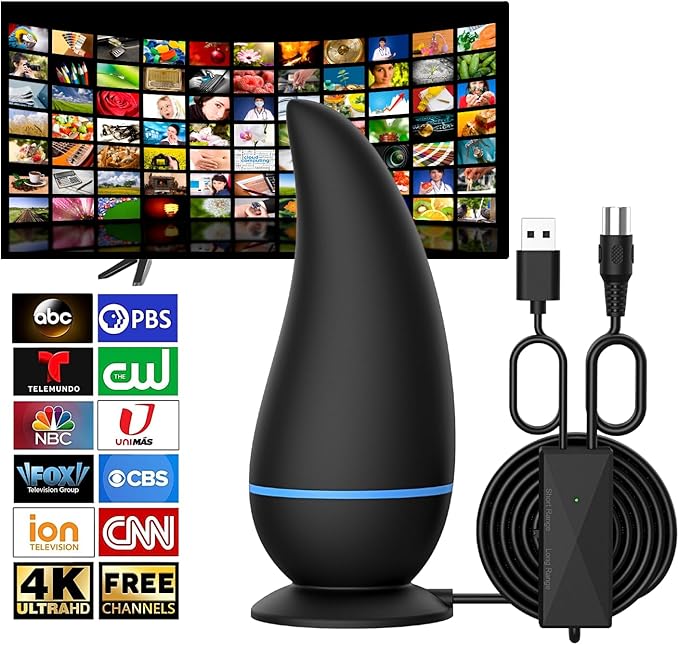 - Wzmocniony sygnał: Ta wewnętrzna/zewnętrzna antena telewizyjna jest wyposażona we wbudowany wzmacniacz, który wzmacnia słabe sygnały, zapewniając optymalną wydajność tunera telewizyjnego. Poprawia odbiór kanałów HD i 4K, zapewniając czysty, nieprzerwany odbiór. Idealna do sygnałów Freeview, cyfrowych i HDTV, ta antena o wysokim wzmocnieniu poprawia siłę i jakość sygnału, przezwyciężając typowe problemy z odbiorem.