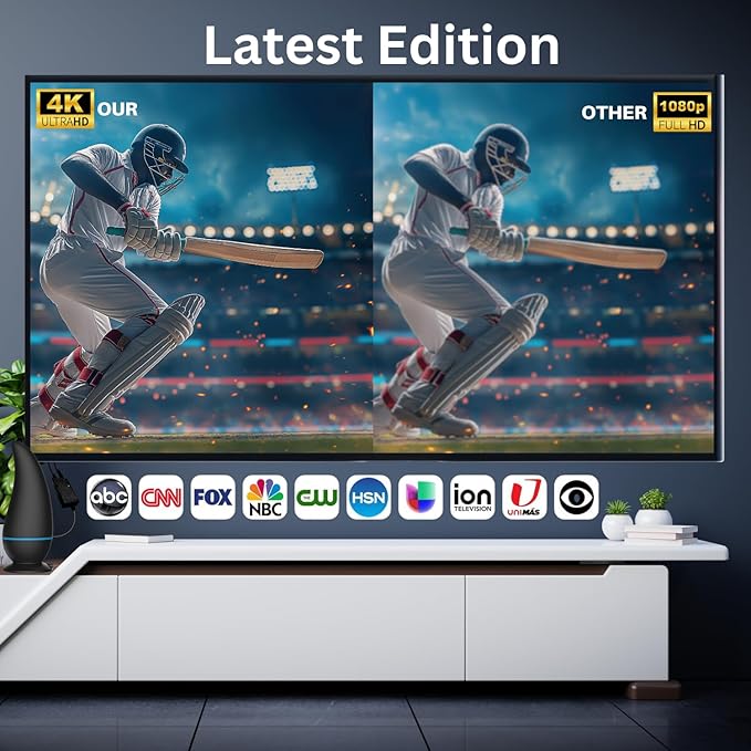 - Wszechstronna kompatybilność: Ta antena telewizyjna obsługuje główne kanały nadawcze, w tym NBC, ABC, CBS, Fox i inne, zapewniając dostęp do szerokiej gamy popularnych sieci. Została zaprojektowana tak, aby przechwytywać wysokiej jakości sygnały z tych kluczowych kanałów, zapewniając, że możesz cieszyć się wszystkimi swoimi ulubionymi programami, wiadomościami i sportem w krystalicznie czystej przejrzystości. Niezależnie od tego, czy oglądasz transmisje na żywo, czy też nadrabiasz zaległości w programach, które musisz zobaczyć, ta antena zapewnia niezawodny dostęp do najlepszych kanałów, zapewniając kompleksowe wrażenia wizualne.