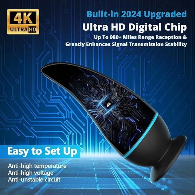 - Bezkonkurencyjny zasięg: Ta wszechstronna antena telewizyjna do użytku wewnątrz i na zewnątrz charakteryzuje się imponującym zasięgiem 980+ mil, zapewniając wyjątkowy odbiór sygnału zarówno wewnątrz, jak i na zewnątrz. Zaprojektowana z myślą o doskonałej wydajności, dostarcza czyste i niezawodne sygnały nadawcze dla Freeview TV, co czyni ją idealną do odbioru kanałów wysokiej rozdzielczości z dużych odległości.