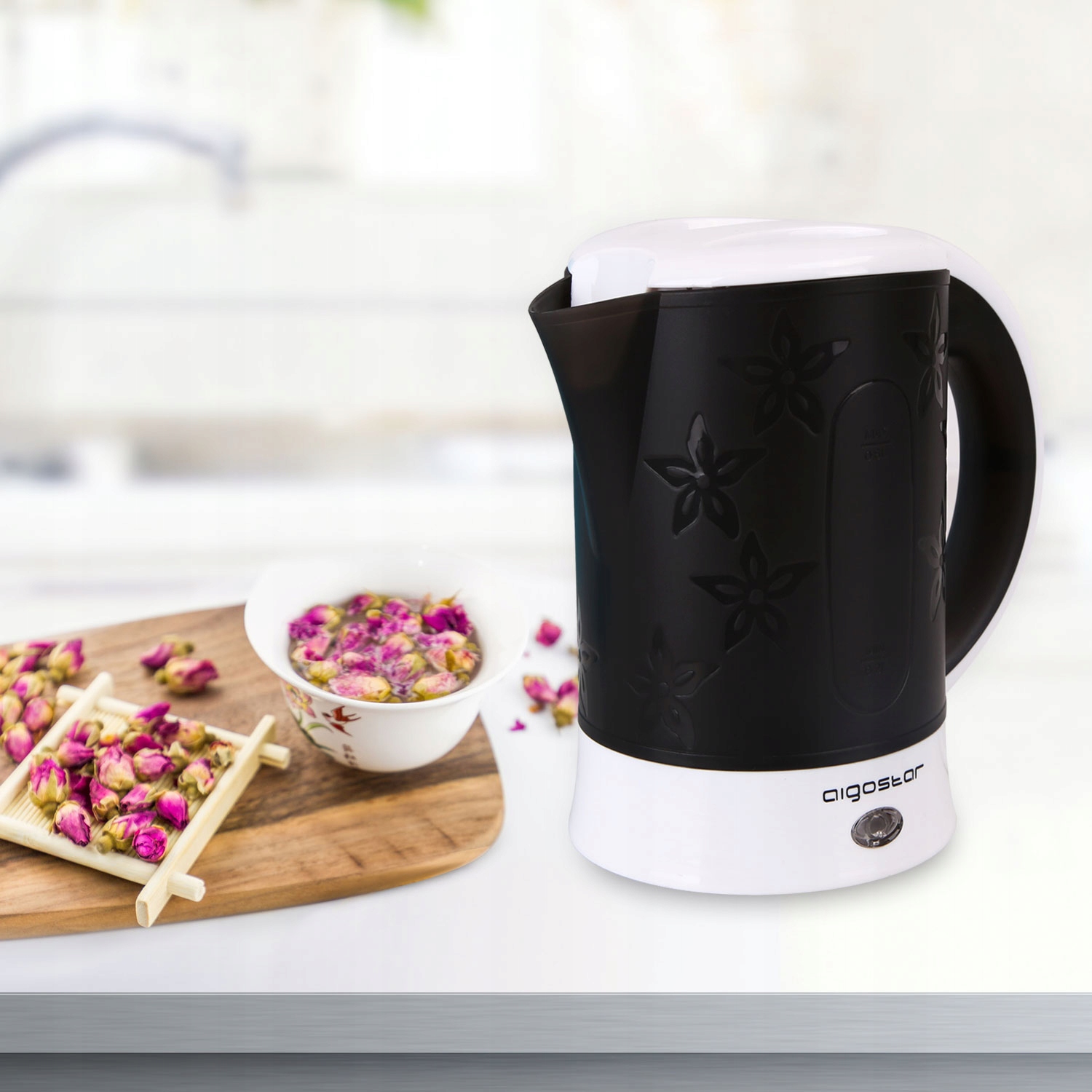 - Mały i poręczny czajnik o pojemności 1L idealny zarówno w domu jak i na wyjazdy.