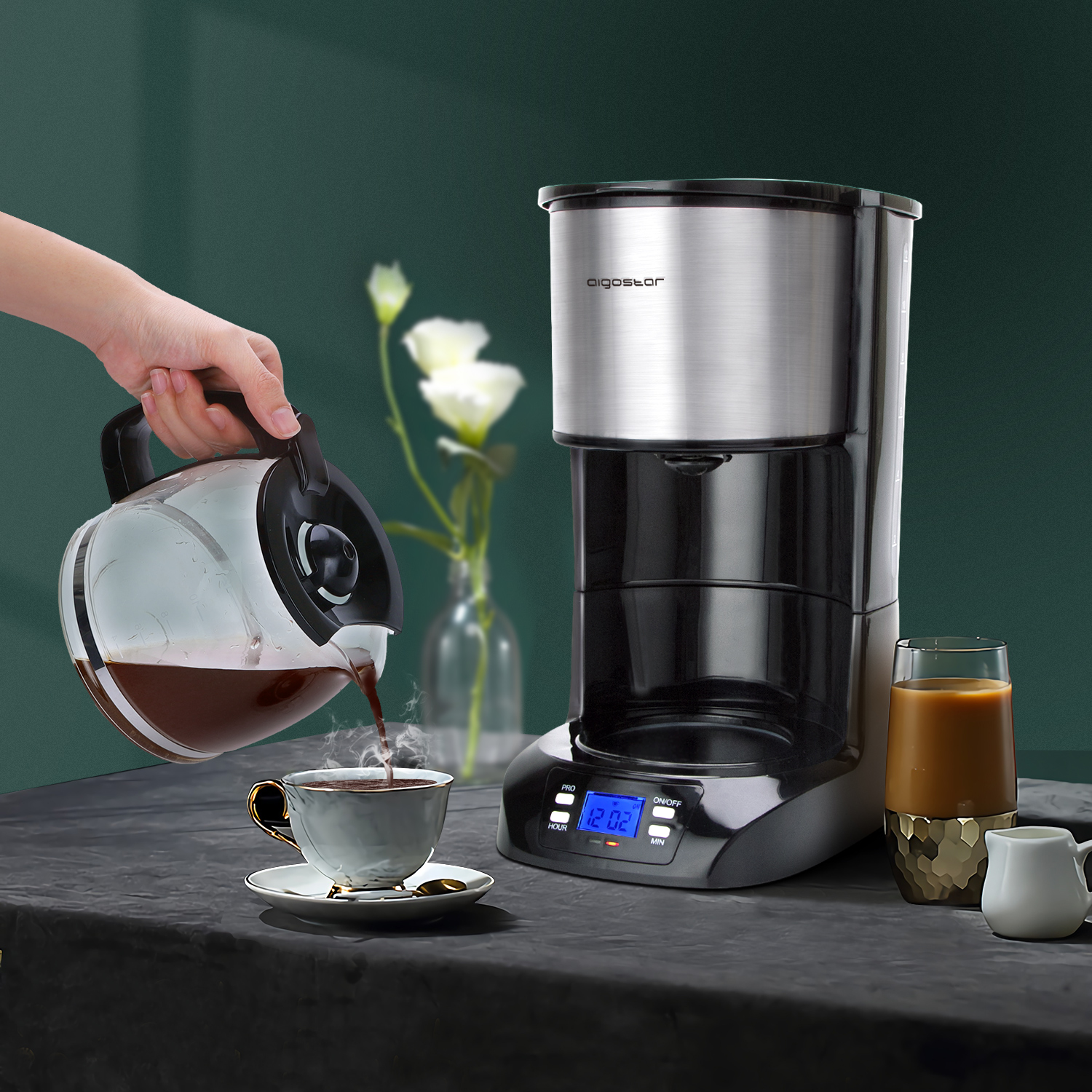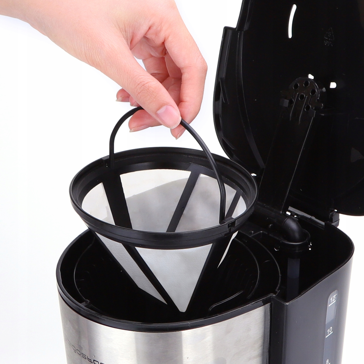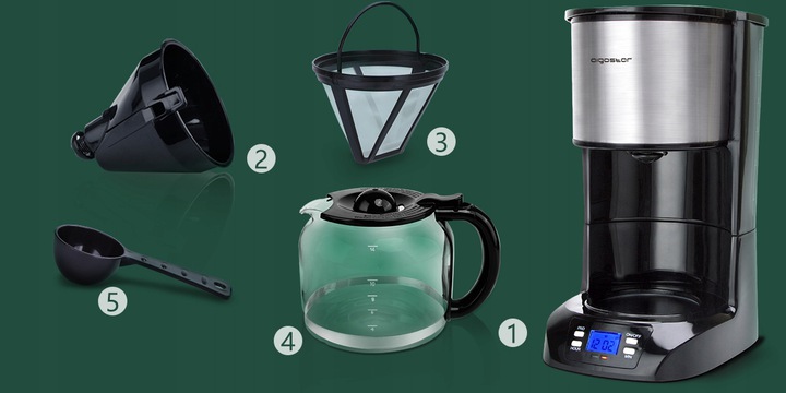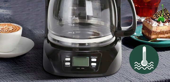 800 W mocy pozwala przygotować od 1 do 12 filiżanek kawy w kilka minut, dzbanek jest wykonany z odpornego szkła borokrzemowego, a wyjmowany filtr wielokrotnego użytku jest łatwy do czyszczenia. Co więcej, jest całkowicie wolny od BPA.