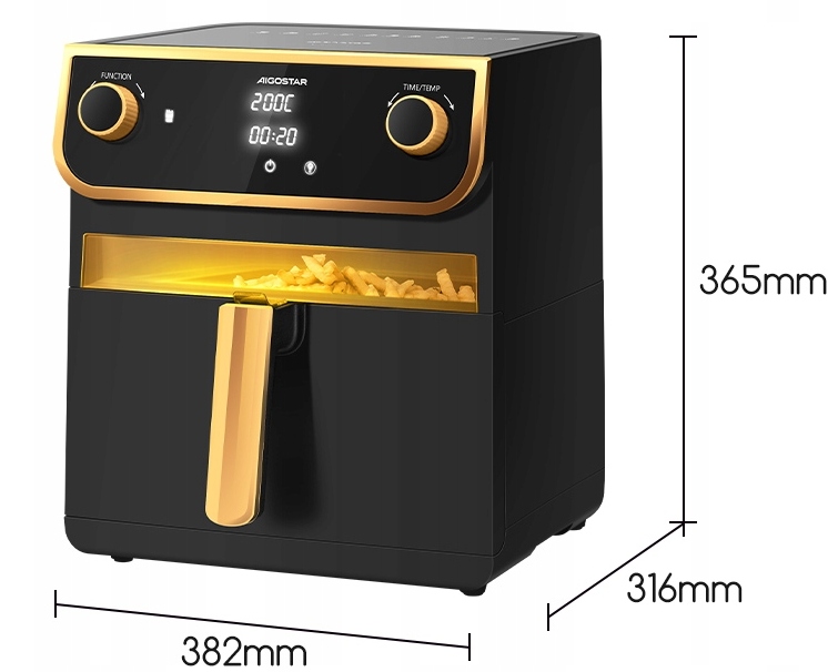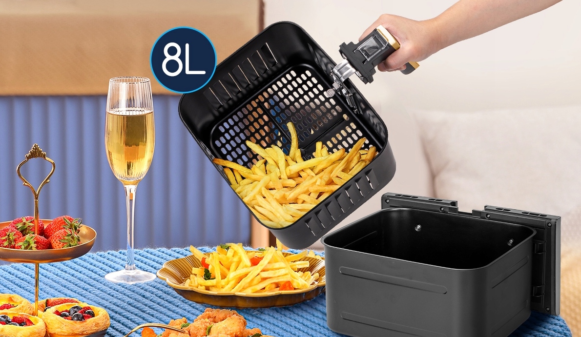 Szybki obieg powietrza 3D zastępuje smażenie na oleju, a przygotowane potrawy są chrupiące, ale nie tłuste, niskotłuszczowe i zdrowe.