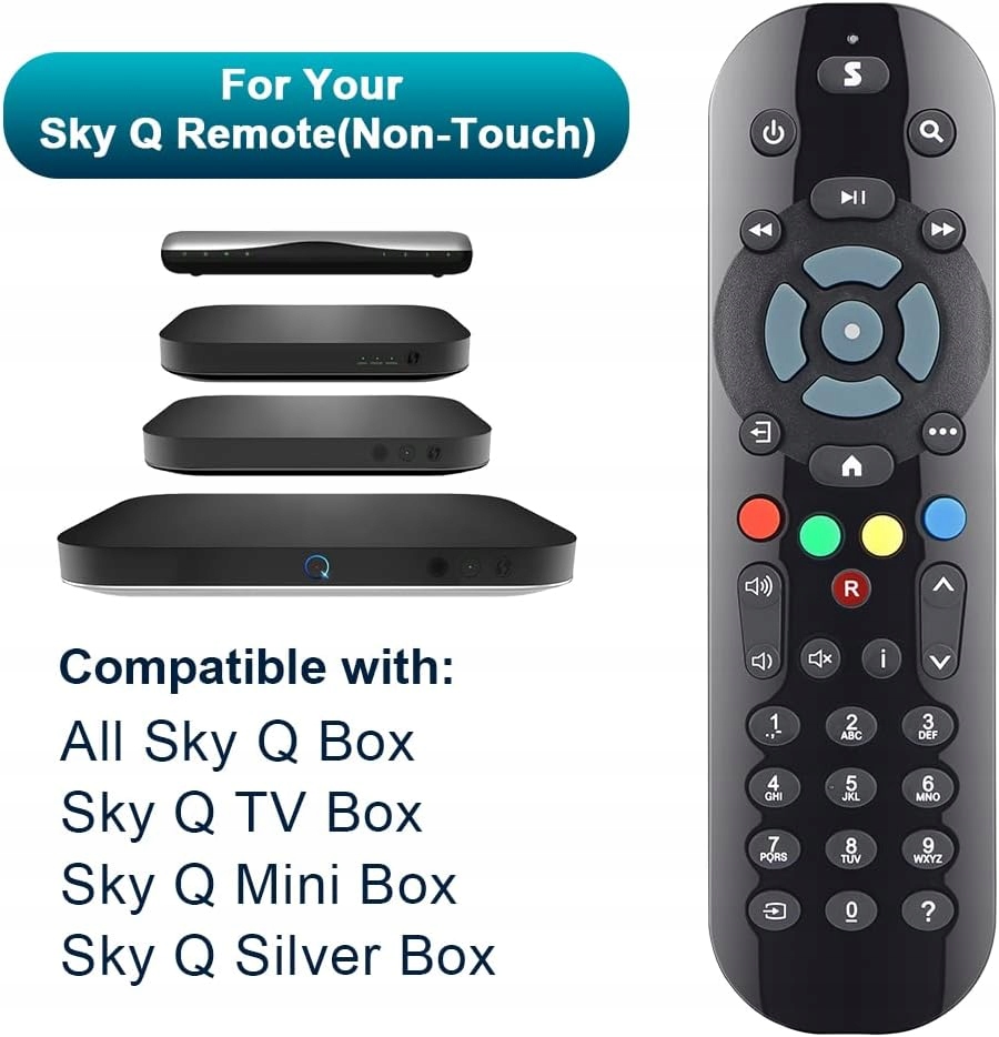 - Pilot zamienny kompatybilny ze wszystkimi dekoderami Sky Q, Sky Q TV Box, Sky Q Mini Box i Sky Q Silver Box.