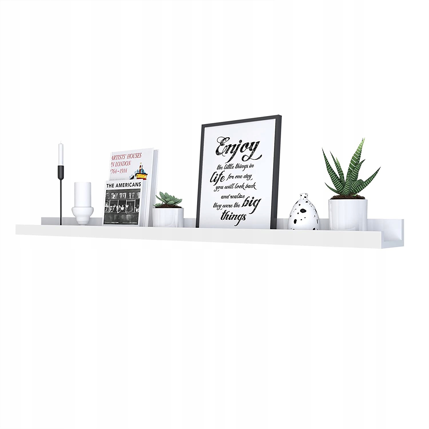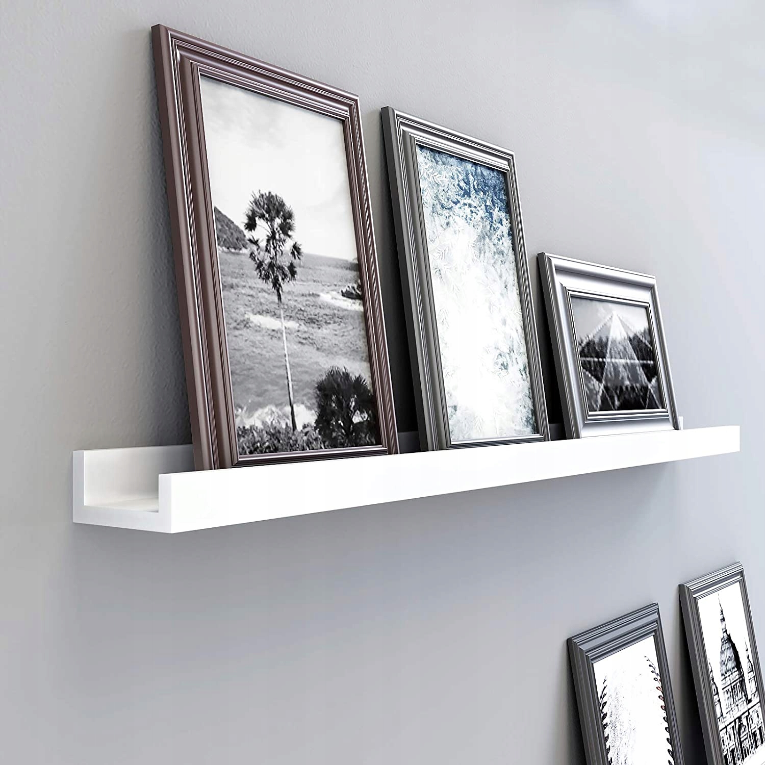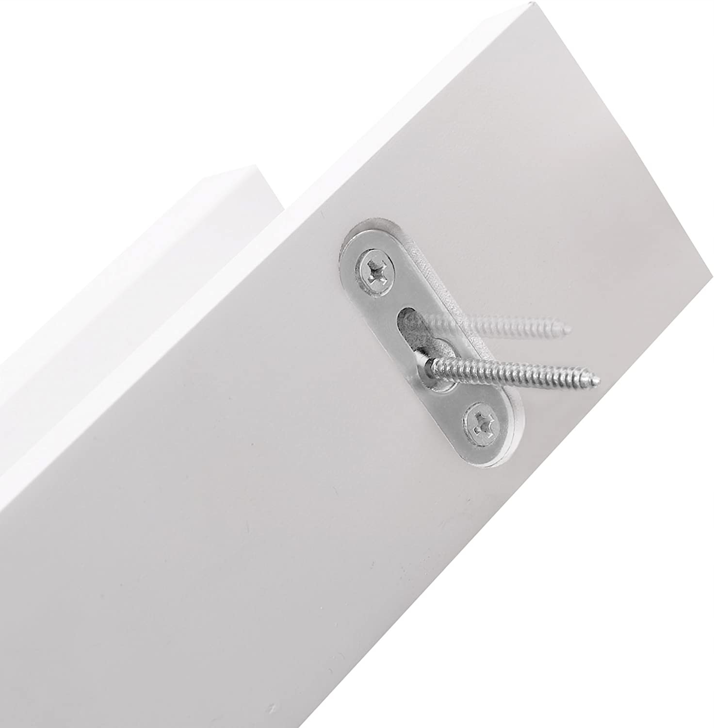- Elegancka konstrukcja krawędzi: Pływająca półka z elegancką krawędzią z przodu zapewnia stabilność obrazu bez przesuwania, Brak widocznych śrub, łączników lub prowadnic, dostarczone naklejki zakrywające otwór na śrubę.