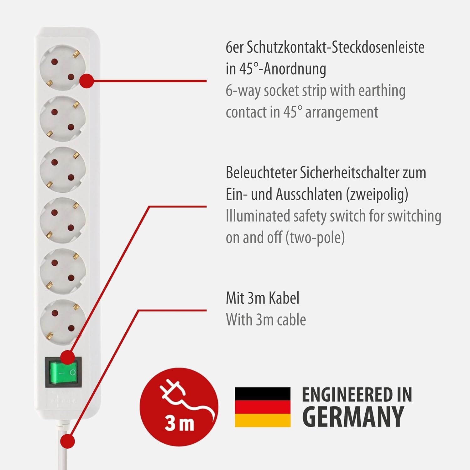 Listwa zasilająca z dwubiegunowym przełącznikiem oferuje tę zaletę, że obwód prądu jest całkowicie przerwany i nie wymaga trybu czuwania – zmniejsz zużycie energii w odczuwalny sposób