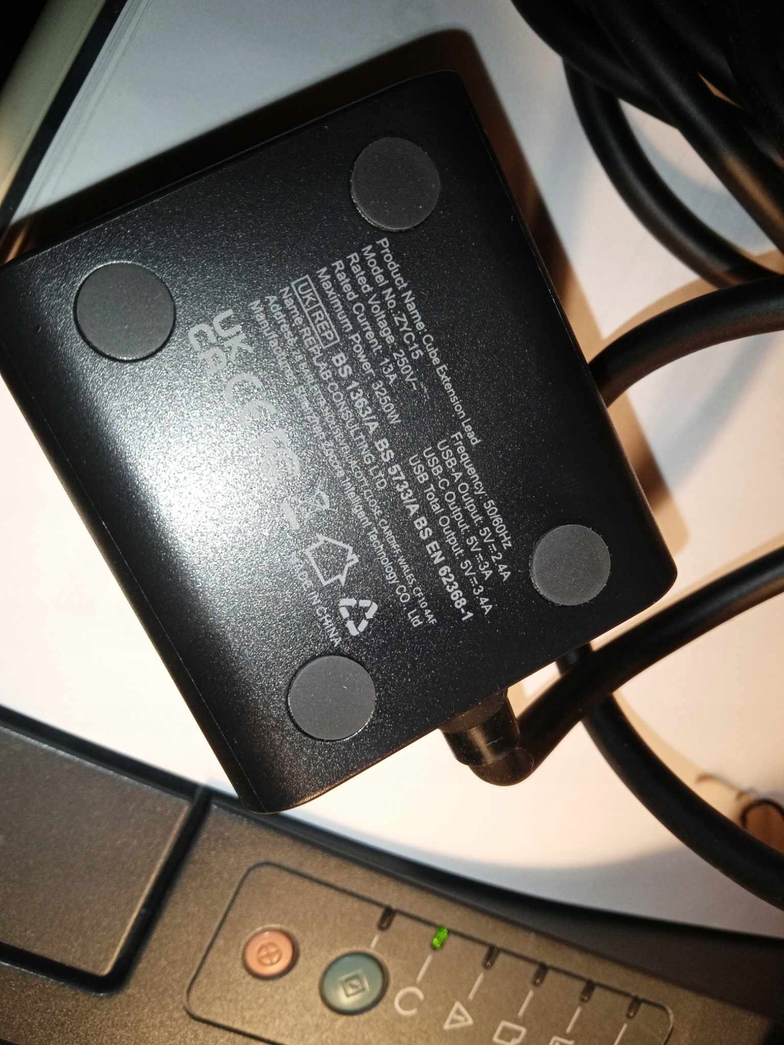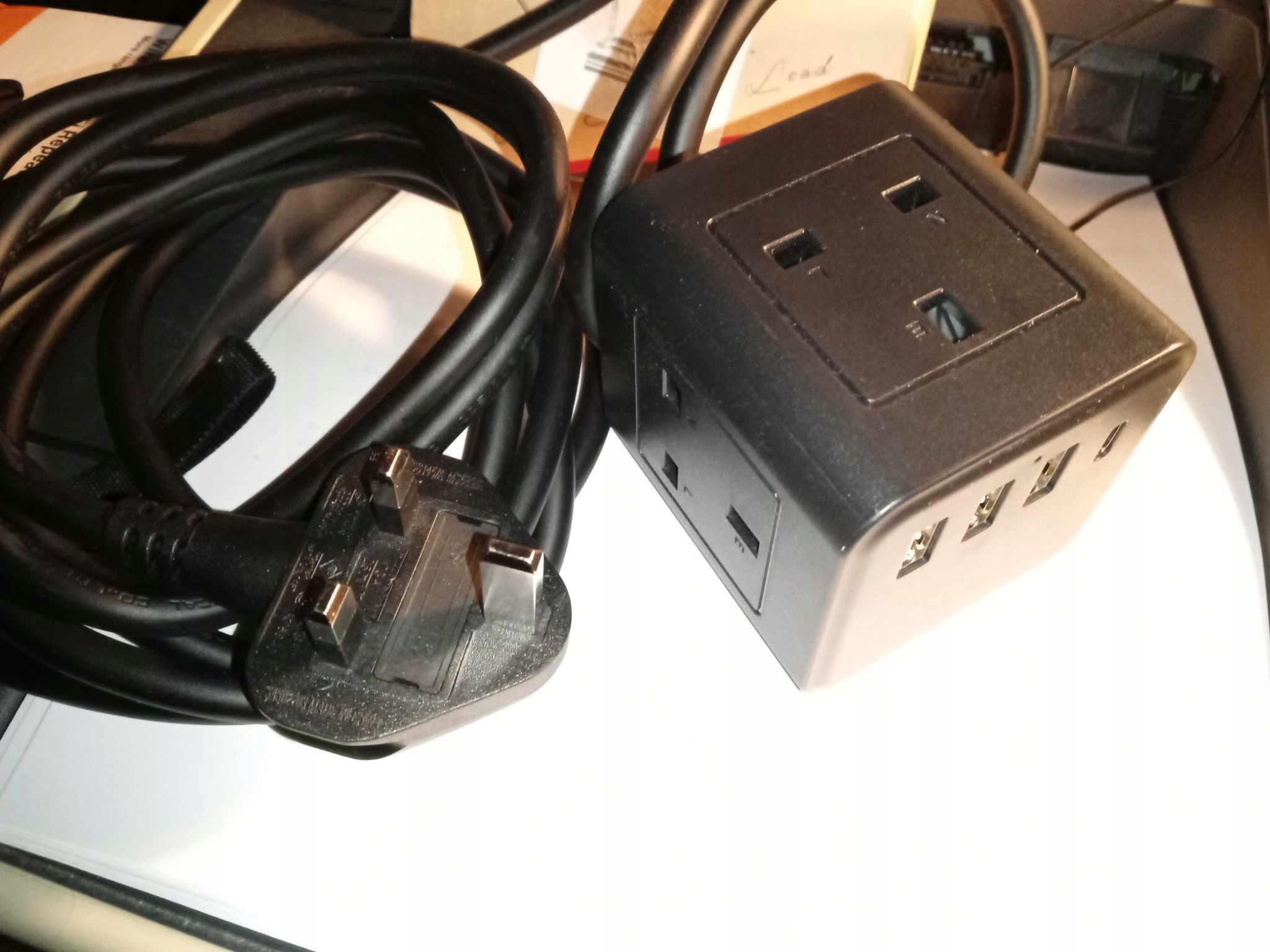 Przewód przedłużający Cube 8 w 1 Przewód przedłużający Cube jest wyposażony w 3 porty USB-A (5 V/2,4 A) i 1 port USB-C (5 V/3,1 A) do szybkiego ładowania wielu urządzeń. Przedłużacz wtykowy 3 gniazda AC, 1 x szczoteczka elektryczna AC, wbudowana inteligentna technologia, wyjście wielogniazdkowe o łącznej mocy 3250 W/13 A.