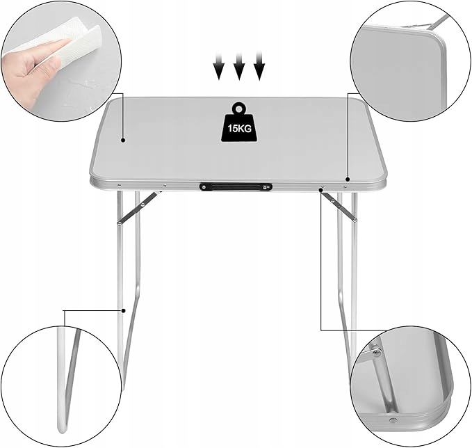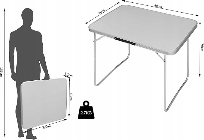 - Aluminiowy stół wielofunkcyjny: dzięki praktycznemu wzornictwu i niewielkiej wadze stół składany nadaje się do różnych aktywności wewnątrz i na zewnątrz. Oprócz zastosowania jako stół kempingowy stół może być również używany jako dodatkowy stół do jadalni, stół roboczy dla dzieci, jako stół ogrodowy, stół balkonowy itp.