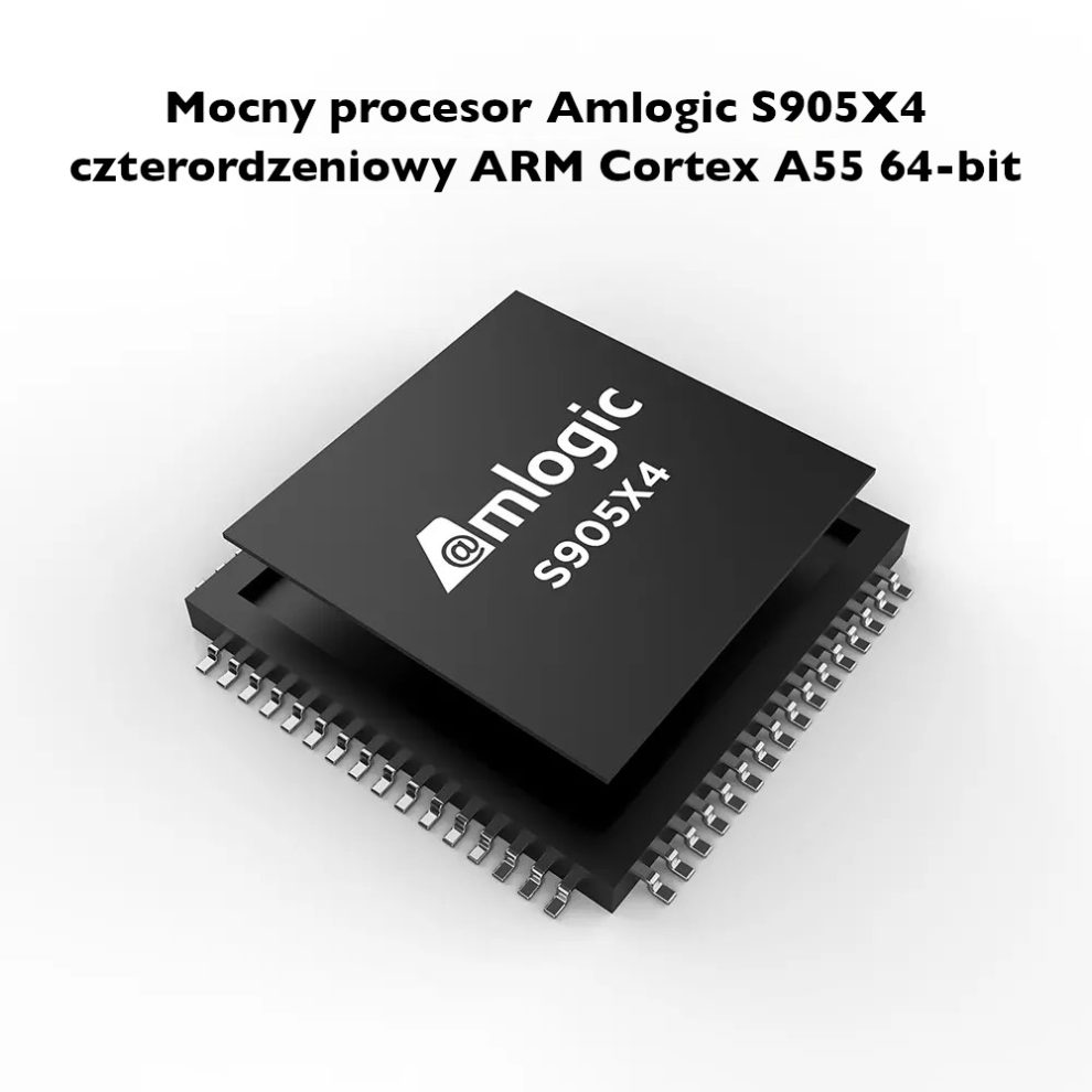 - Amlogic S905X4 z układem graficznym Mali G31, 4GB RAM, 32GB eMMC