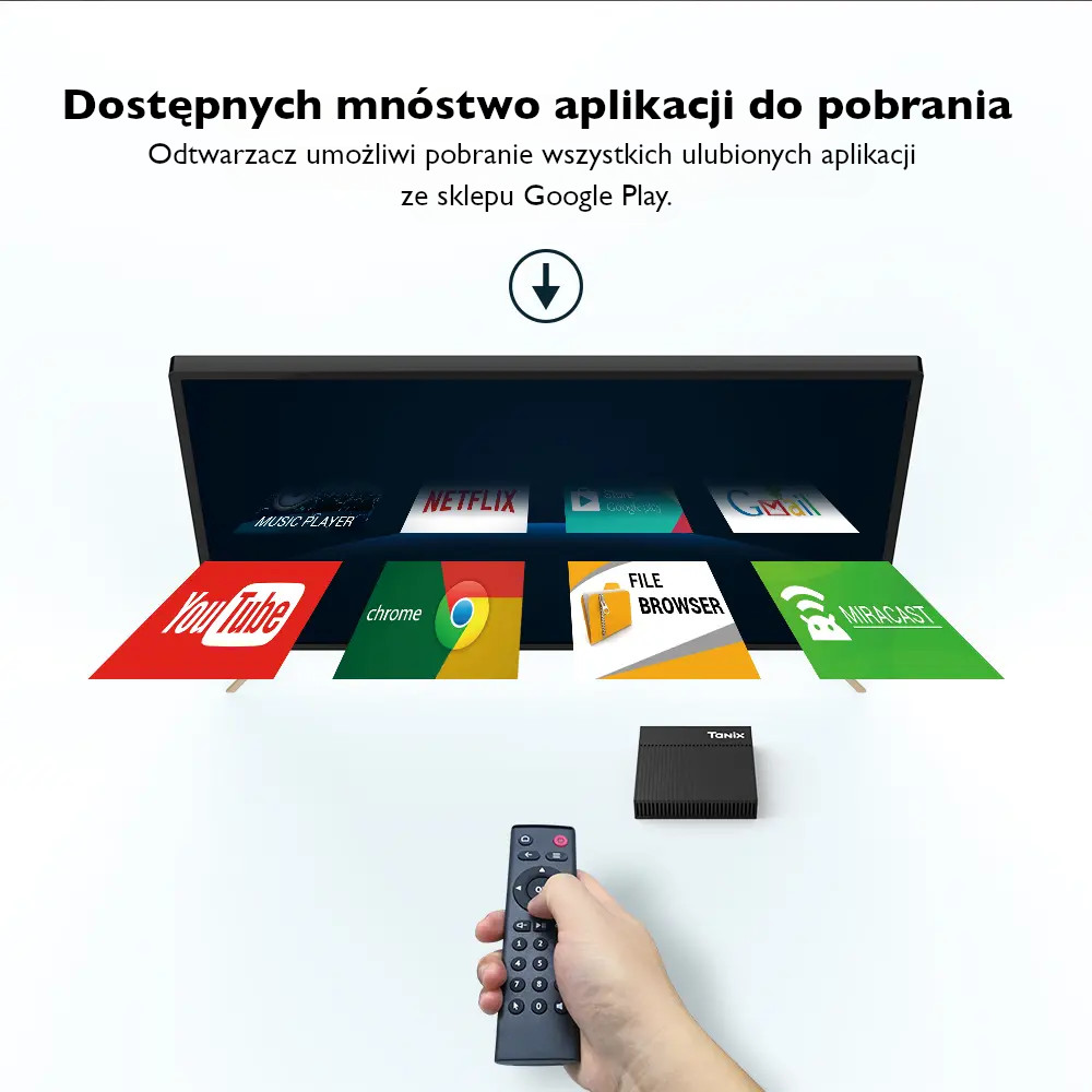 Urządzenie w przeciwieństwie do nowych telewizorów z funkcją Smart i systemem Android TV, oparte jest na systemie w wersji mobilnej, stąd nie posiada praktycznie żadnych ograniczeń. Tysiące aplikacji dostępnych z platformy Google pozwolą na dowolną konfigurację i wykorzystanie urządzenia jako prawdziwe centrum multimedialne Twojego domu, czy mini komputer PC z szybkim procesorem i wydajnym układem graficznym.