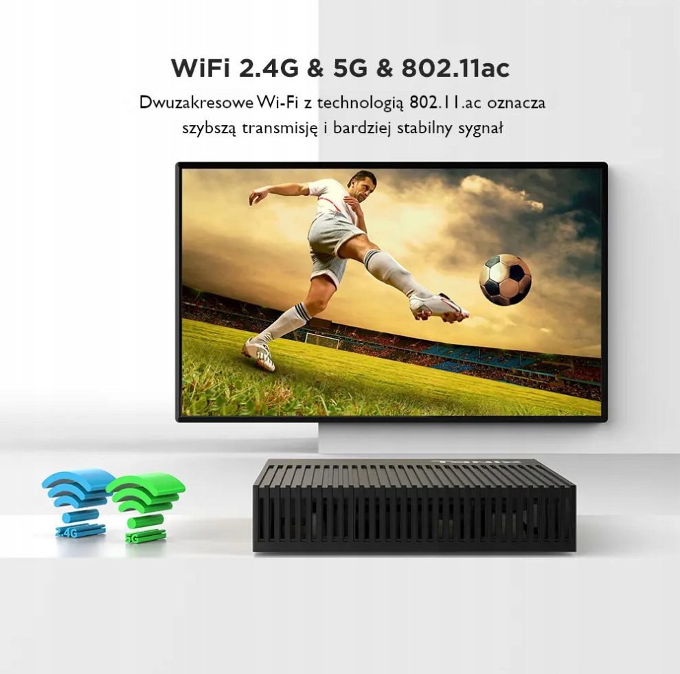 Ciesz się błyskawiczną łącznością z naszym Android TV Box, wyposażonym w dwuzakresowe WiFi dla częstotliwości 2.4G i 5G. Wykorzystując zaawansowaną technologię 802.11.ac, nasza podwójna konstrukcja WiFi zapewnia szybsze prędkości transmisji i bardziej stabilny sygnał. Ciesz się płynnym strumieniowaniem, grami i przeglądaniem, ponieważ nasza innowacyjna łączność zwiększa wydajność, zapewniając niezrównaną niezawodność dla Twoich potrzeb rozrywkowych.