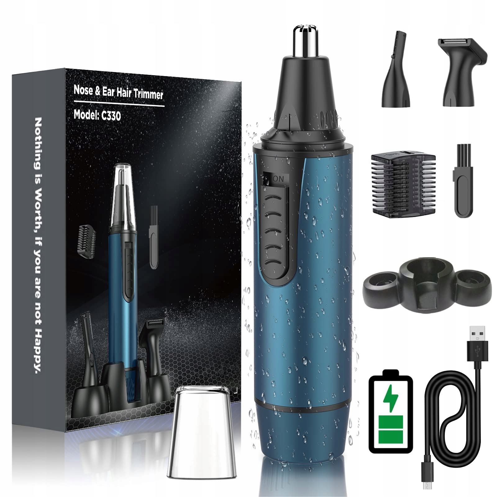 【Wodoodporność IPX7 do użytku na mokro i na sucho】 Trymer do włosów w nosie i uszach dla mężczyzn ma konstrukcję odporną na IPX7, co zapewnia swobodę golenia na sucho, pod prysznicem lub w wannie. Trzy zmywalne i zdejmowane głowice do przycinania są łatwe do czyszczenia i konserwacji.