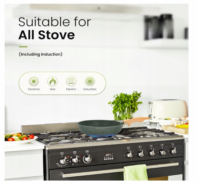 ✔ Nadaje się do wszystkich typów kuchenek: indukcyjnych, gazowych, ceramicznych, halogenowych