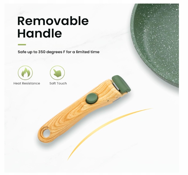 ✔ Zdejmowany bakelitowy uchwyt – odporny na wysoką temperaturę, izoluje ciepło
